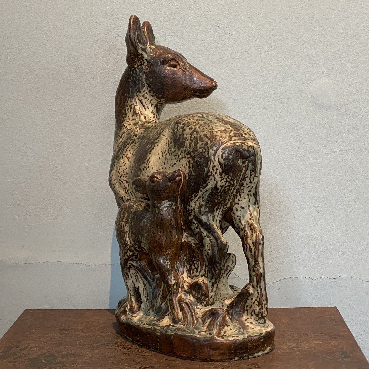 Stentøjsfigur af dådyr med rålam.