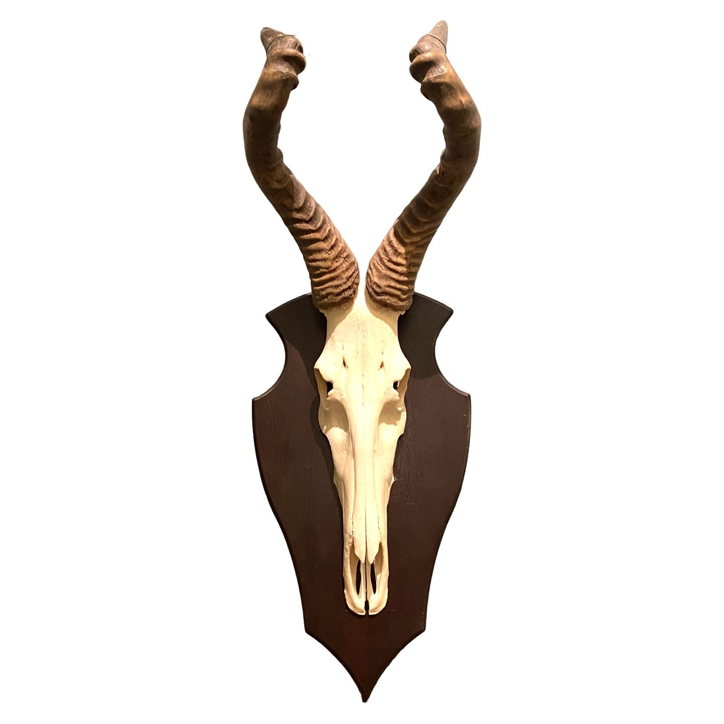 Varenummer: 630255Jagttrofæ af Hartebeest (rød koantilope) monteret på plade