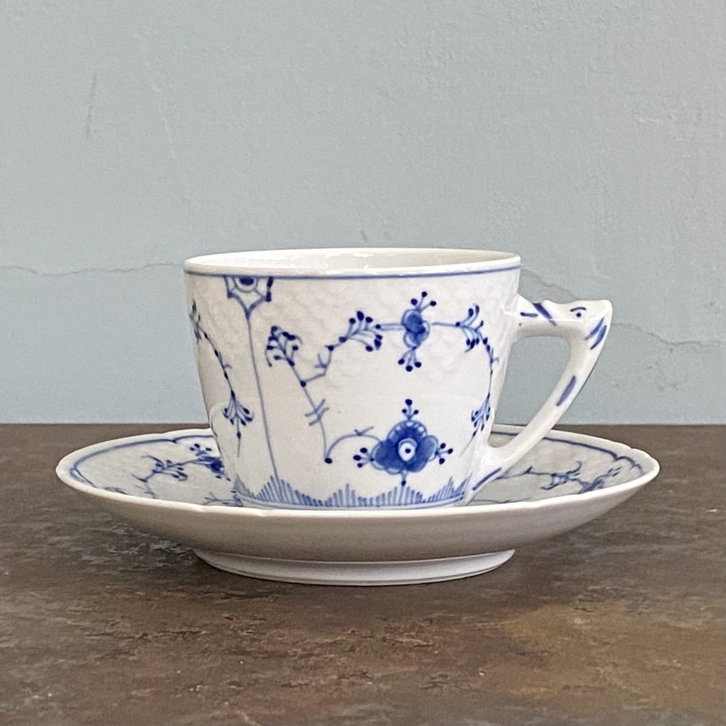 Blåmalet (musselmalet) kaffekop nr 305/102 med underkop.