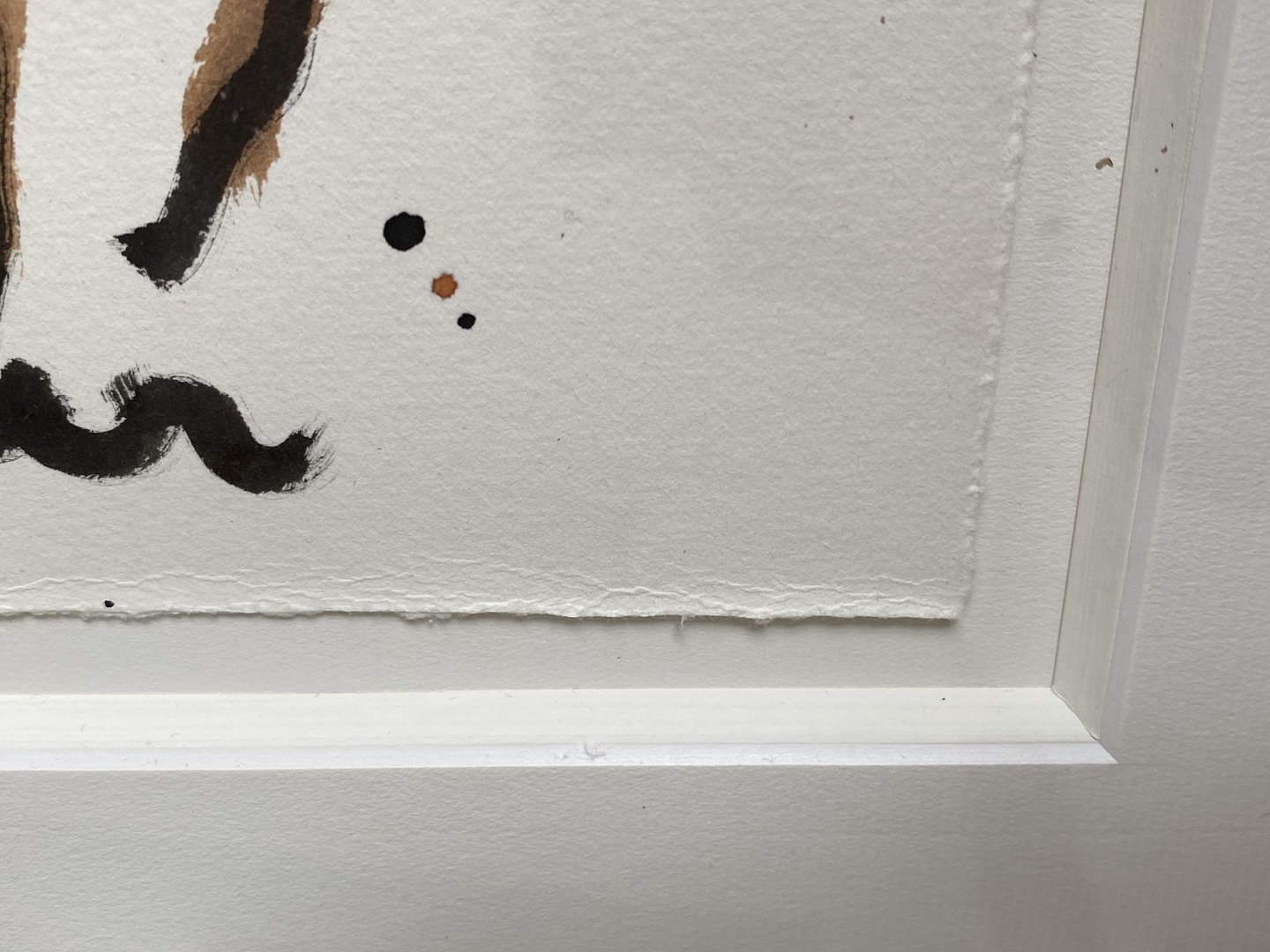 Akvarel på håndgjort papir opsat svævende med en meget kraftig paspartout og indrammet i en smuk sortbejset træramme med håndforsølvet kant. Indramningen er udført i Holland stempel bagpå.