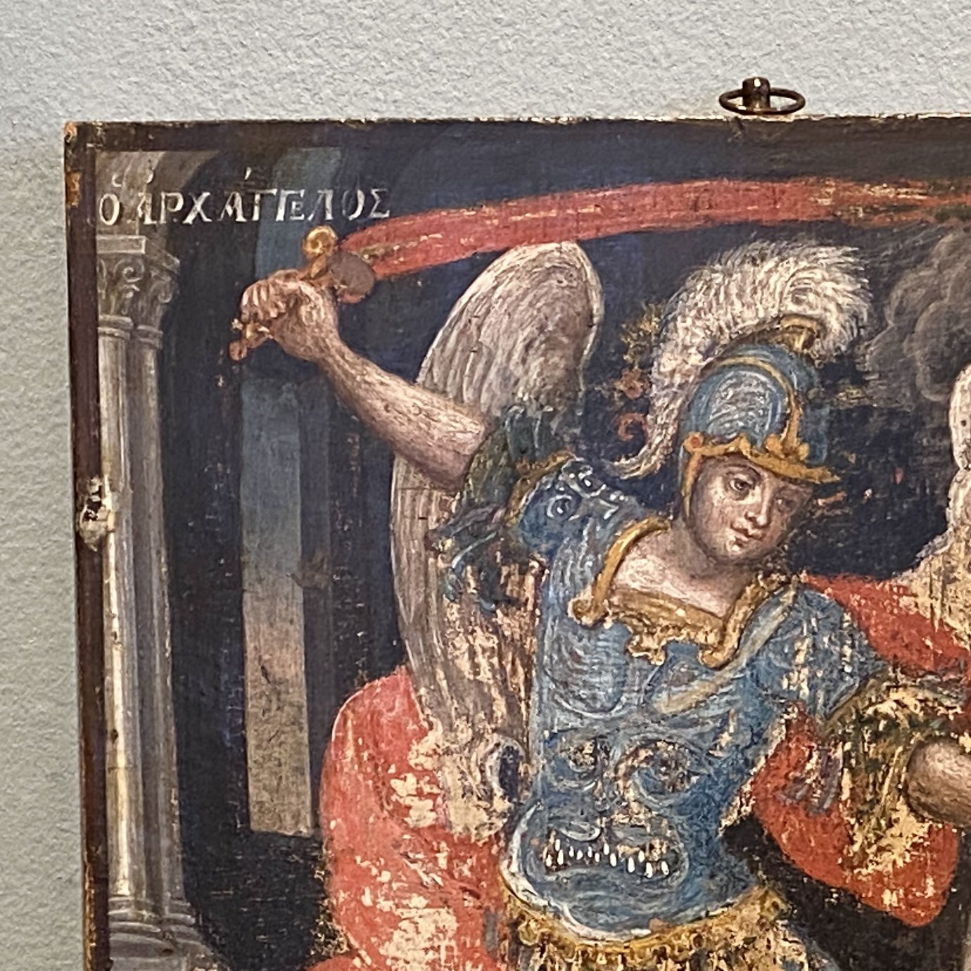 Græsk Ikon bemalet med ærkeenglen Mikael som besejrer Satan.