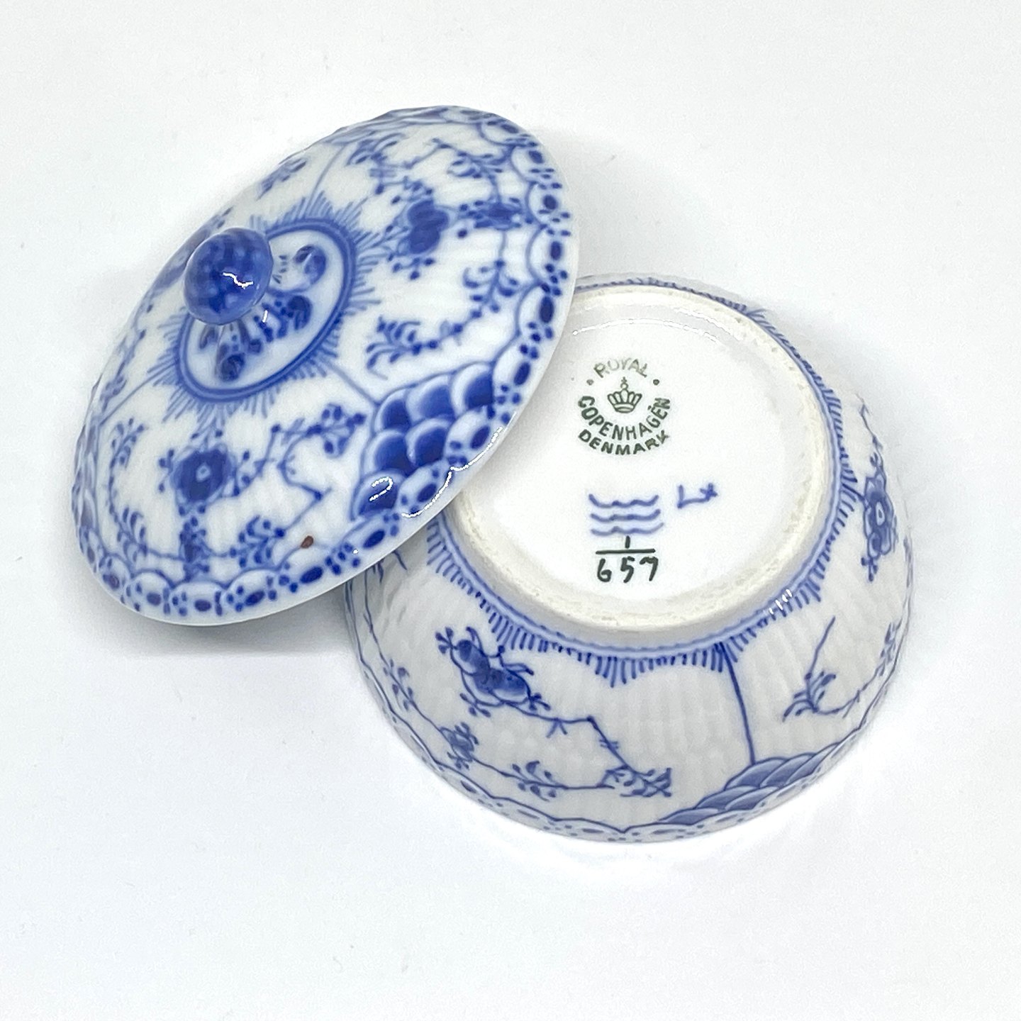 Musselmalet halvblonde. Lille sukkerskål med låg.