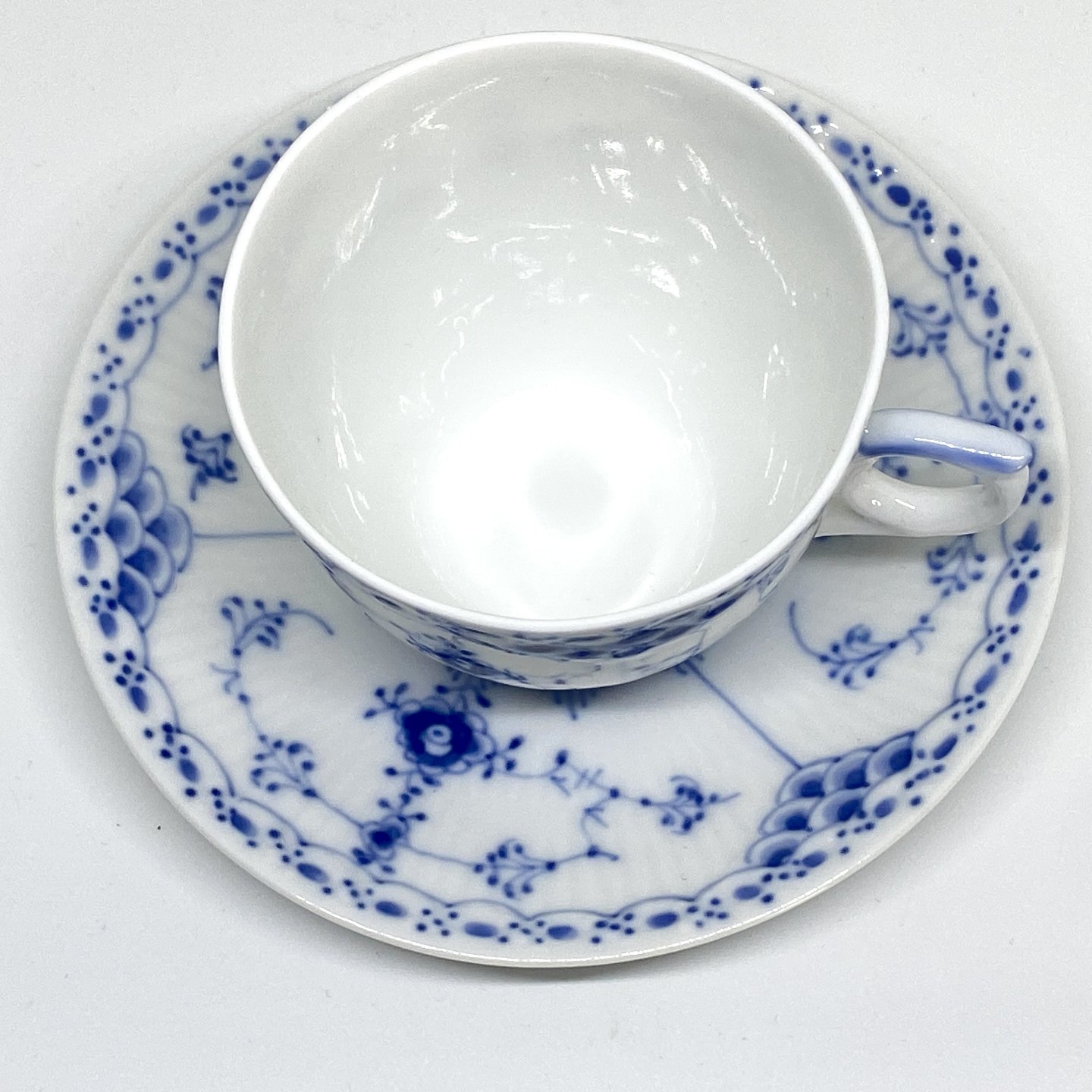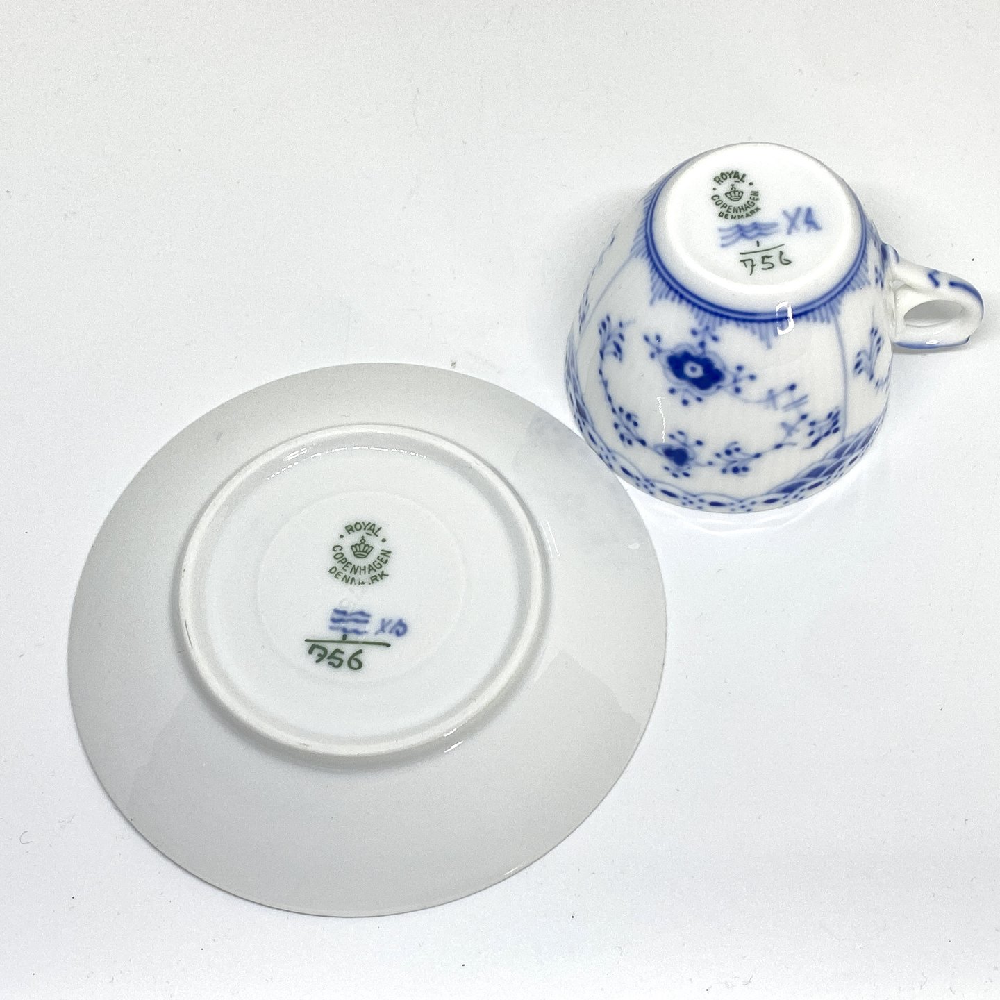 Royal Copenhagen/Kgl Musselmalet halvblonde kaffekop og underkop.